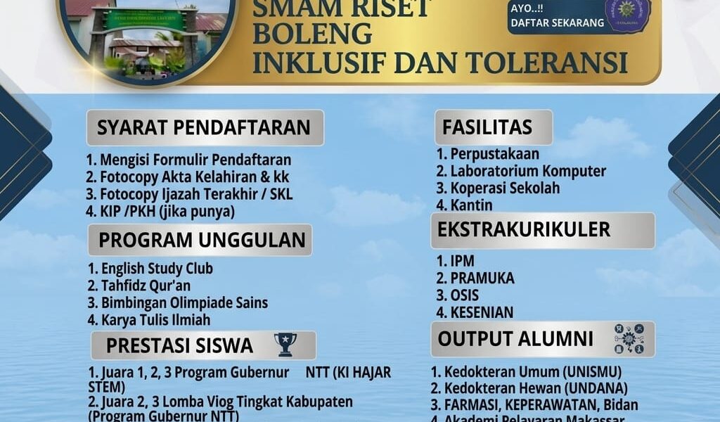 🚀 AYO BERGABUNG DI SMAM RISET BOLENG, SEKOLAH INKLUSIF & TOLERAN TERBAIK DI FLORES! 🚀